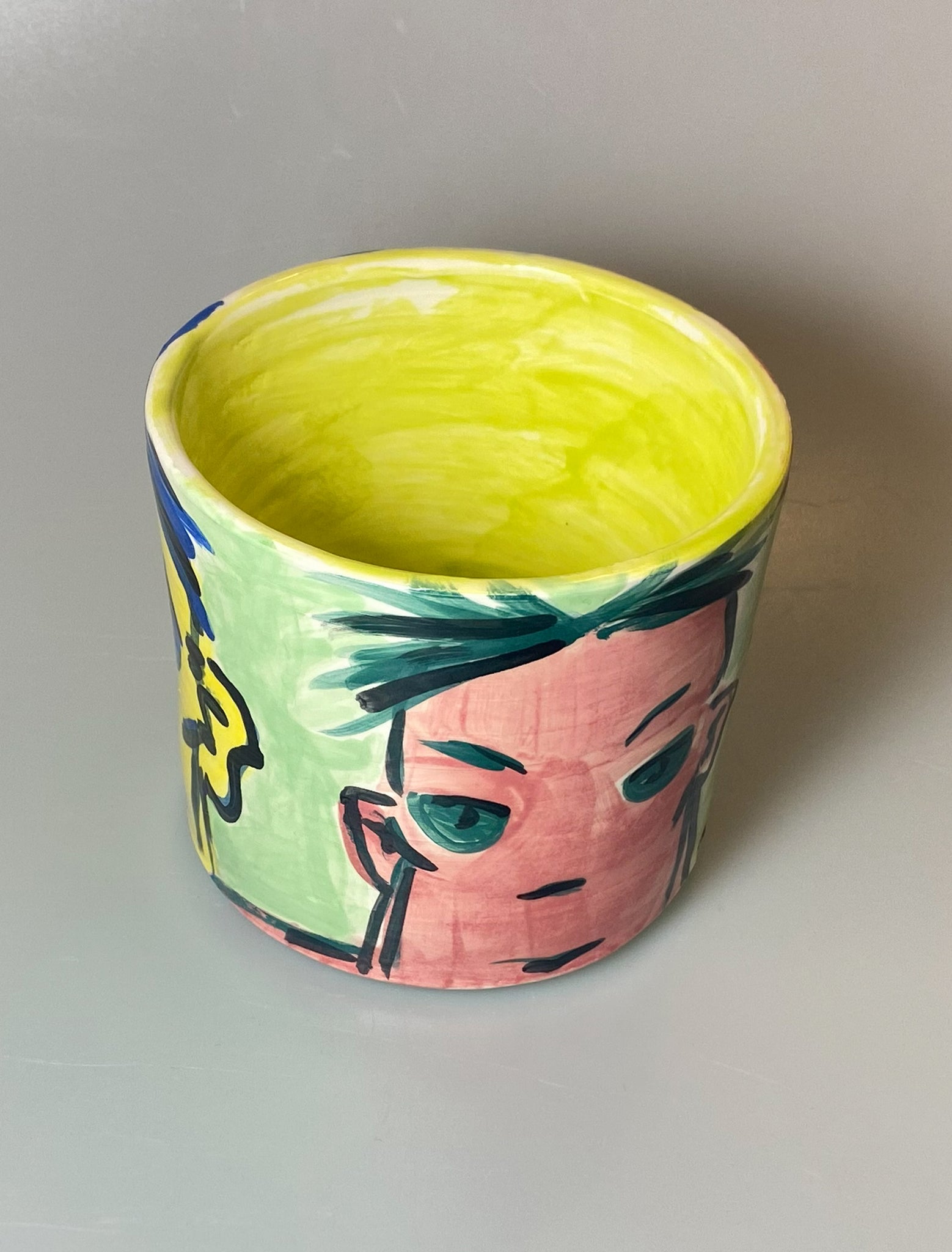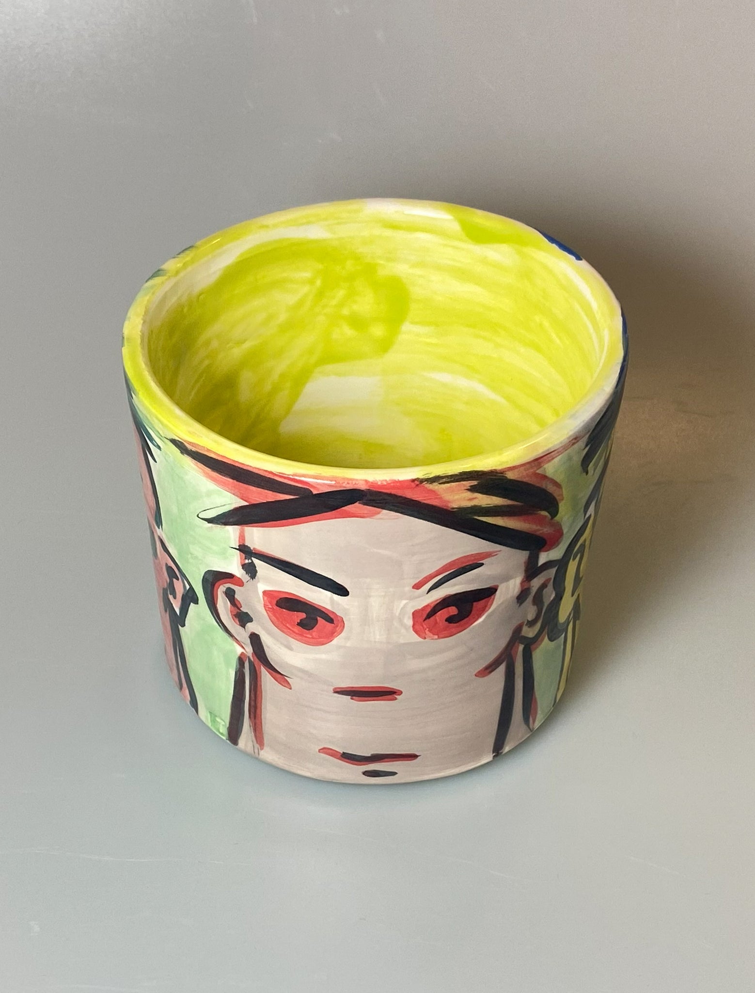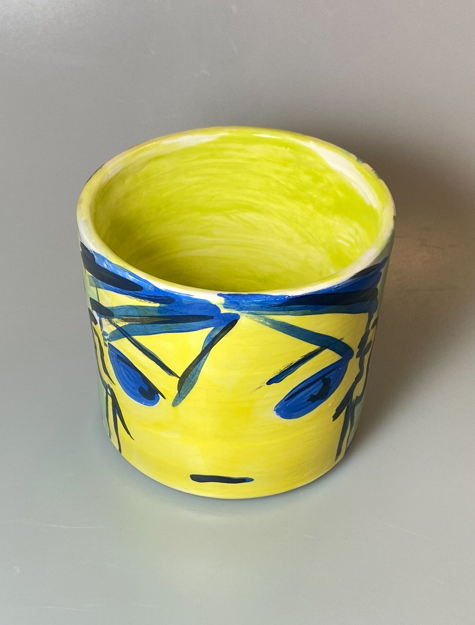 Under glazed paint on earthenware, glazed
